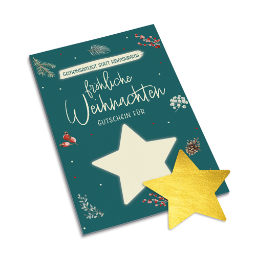 Gutschein-Postkarte aus extra starkem Karton (600 g/m²) mit Rubbelfeld zum Aufkleben, 10,5 x 14,8 cm (A6), mit Beiblatt zur Erklärung, VE für den Handel: 3 Stück pro Motiv