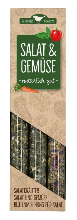 Inhalt ges. 18 g - 5 g Salatkräuter, 10 g Salat und Gemüse, 3 g Blütenmischung für SalatSaatvogel Reagenzgläser Set bestehend aus 3 Reagenzgläsern mit verschiedenen Gewürz- und Dipmischungen, mit Korkverschluss, ca. 19 cm x 1,7 cm (Durchmesser), Füllmenge variiert je nach Sorte, Maße Kartonverpackung: 5 x 19,5 x 2 cm