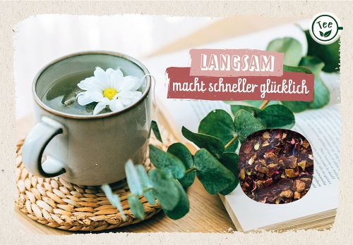 Teekarte mit Sichtfenster, 16,5 x 11,5 cm, gefüllt mit 15 g natürlich aromatisierter Früchteteemischung Vitamingarten