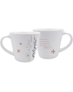 Versüßen Sie sich Ihre Tee- oder Kaffeerunde mit dieser farbenfrohen Tasse. Sie ist mit einer wertvollen Botschaft und einem Bibelvers versehen und verbreitet selbst bei tristem Wetter gute Laune. Dies ist ein von Hand dekoriertes Produkt. Die Tassen können daher in Form und Farbe variieren.