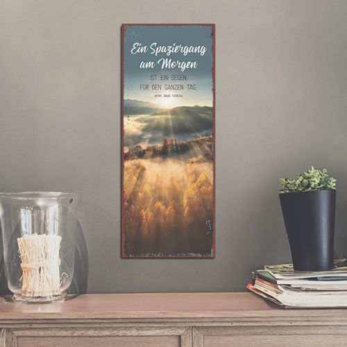 Metallschild 'Ein Spaziergang am Morgen ist ein Segen