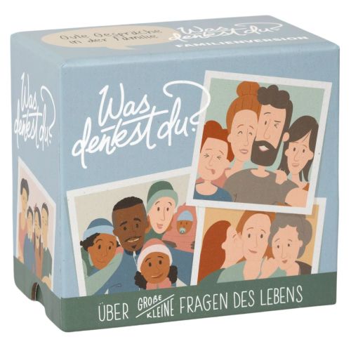 WAS DENKST DU? besteht aus 90 illustrierten Gesprächskarten über die großen und kleinen Fragen des Lebens. Jede Karte ha t ihr eigenes Thema und die drei Fragen der Karte machen es einfach, interessante Gespräche zu führen. Themen: Selbstve rtrauen, soziale Medien, Verantwortung, Umwelt, Aussehen, Re spekt, Mut, Bildschirmzeit, sich Sorgen machen, Tod, Vertrau en, Geduld usw. Zieht eine Karte und stärkt das Verständnis und die Einheit in eurer Familie indem ihr auf die Gedanken, n zum Beispiel beim gemeinsamen Essen oder auf Reisen. Am be sten ab 6 Jahren, jüngere Geschwister können aber auch ein b isschen mitmachen. SICHERHEITSHINWEIS: Achtung: Nicht geeignet für Kinder unter 6 Jahren. Benutzung unter Aufsicht von Erwachsenen!