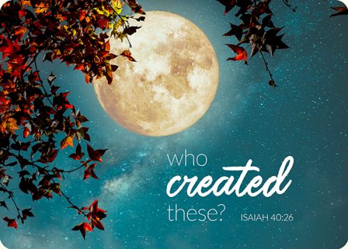 mit Text auf der Rückseite: Lift up your eyes on high and see: w ho created these? He who calls all the stars by name; by the greatness of his might and because he is strong in power, n ot one is missing. Isaiah 40:26