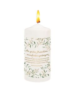 Echtgold-Dekor: Kleine Blätter. Text auf der Rückseite: Von guten Mächten wunderbar geborgen, erwarten wir getrost, was kommen mag. Gott ist mit uns am Abend und am Morgen und ganz gewiss an jedem neuen Tag.