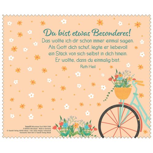 Grafik-Motiv: Fahrrad. Text: Du bist etwas Besonderes! Das wollte ich dir schon immer mal sagen. Als Gott dich schuf, lete er liebevoll ein Stück von sich selbst in dich hinein. Er wollte, dass du einmalig bist.