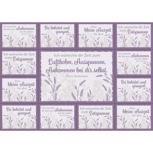 Ich wünsche dir Zeit zum Luftholen, Ausspannen, Ankommen bei dir selbst. (Text großer Aufkleber) / ... zum Entspannen / ... Ankommen bei dir selbst / Sei behütet und gesegnet / Ein e kleine Auszeit für dich (4 Textvarianten kleine Aufkleber)