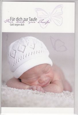 Die passende Karte, für die besonderen Momente des Lebens. H ochwertige Faltkarte mit edlem, transparentem Umschlag. Text: Für dich zur Taufe - Gott segne dich.