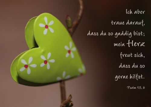 ... du so gnädig bist; mein Herz freut sich, dass du so gern e hilfst. Psalm 13,6