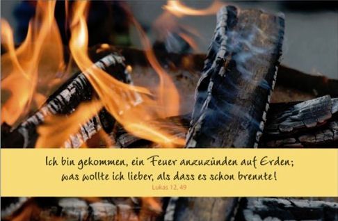 Die passende Karte, für die besonderen Momente des Lebens. H ochwertige Faltkarte mit edlem, transparentem Umschlag. Mutm acher-Faltkarte mit mutmachendem Bibelvers, passendem kurzen erklärendem Text und ansprechender Natur-Fotografie. Text: Ich bin gekommen, ein Feuer anzuzünden auf Erden; was wollte ich lieber, als dass es schon brennte! Lukas 12,49
