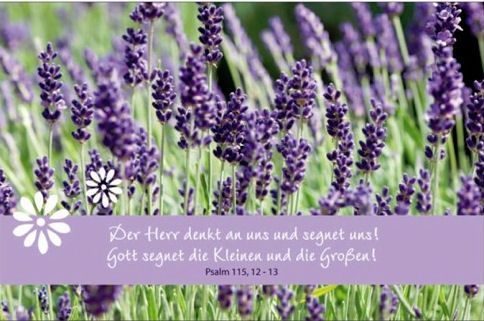 Die passende Karte, für die besonderen Momente des Lebens. H ochwertige Faltkarte mit edlem, transparentem Umschlag. Mutm acher-Faltkarte mit mutmachendem Bibelvers, passendem kurzen erklärendem Text und ansprechender Natur-Fotografie. Text: Der Herr denkt an uns und segnet uns! Gott segnet die Kleinen und die Großen! Psalm 115,12-13