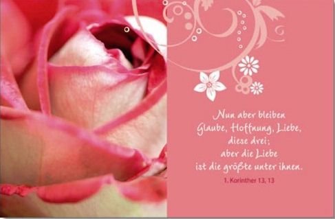 Die passende Karte, für die besonderen Momente des Lebens. H ochwertige Faltkarte mit edlem, transparentem Umschlag. Mutm acher-Faltkarte mit mutmachendem Bibelvers, passendem kurzen erklärendem Text und ansprechender Natur-Fotografie. Text: Nun aber bleiben Glaube, Hoffnung, Liebe, diese drei; aber die Liebe ist die größte unter ihnen. 1. Korinther 13,1 3