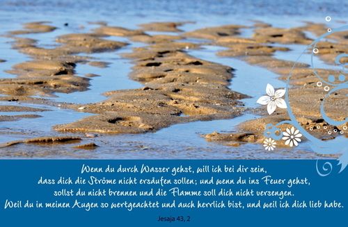 Text: Wenn du durch Wasser gehst, will ich bei dir sein, das s dich die Ströme nicht ersäufen sollen; und ... Jesaja 43,2