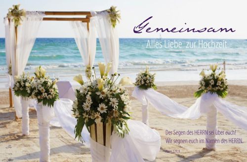 Faltkarte mit Umschlag. Text: Alles Liebe zur Hochzeit. Der Segen des Herrn sei über euch! Wir segnen euch...Psalm 129,8