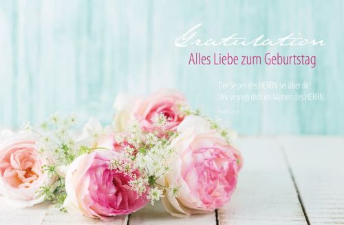 Faltkarte mit Umschlag. Text: Alles Liebe zum Geburtstag. De r Segen des Herrn sei über dir! Wir segnen dich..Psalm 129,8